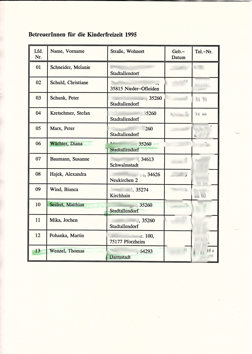 Nebenamtliche Mitarbeiter
