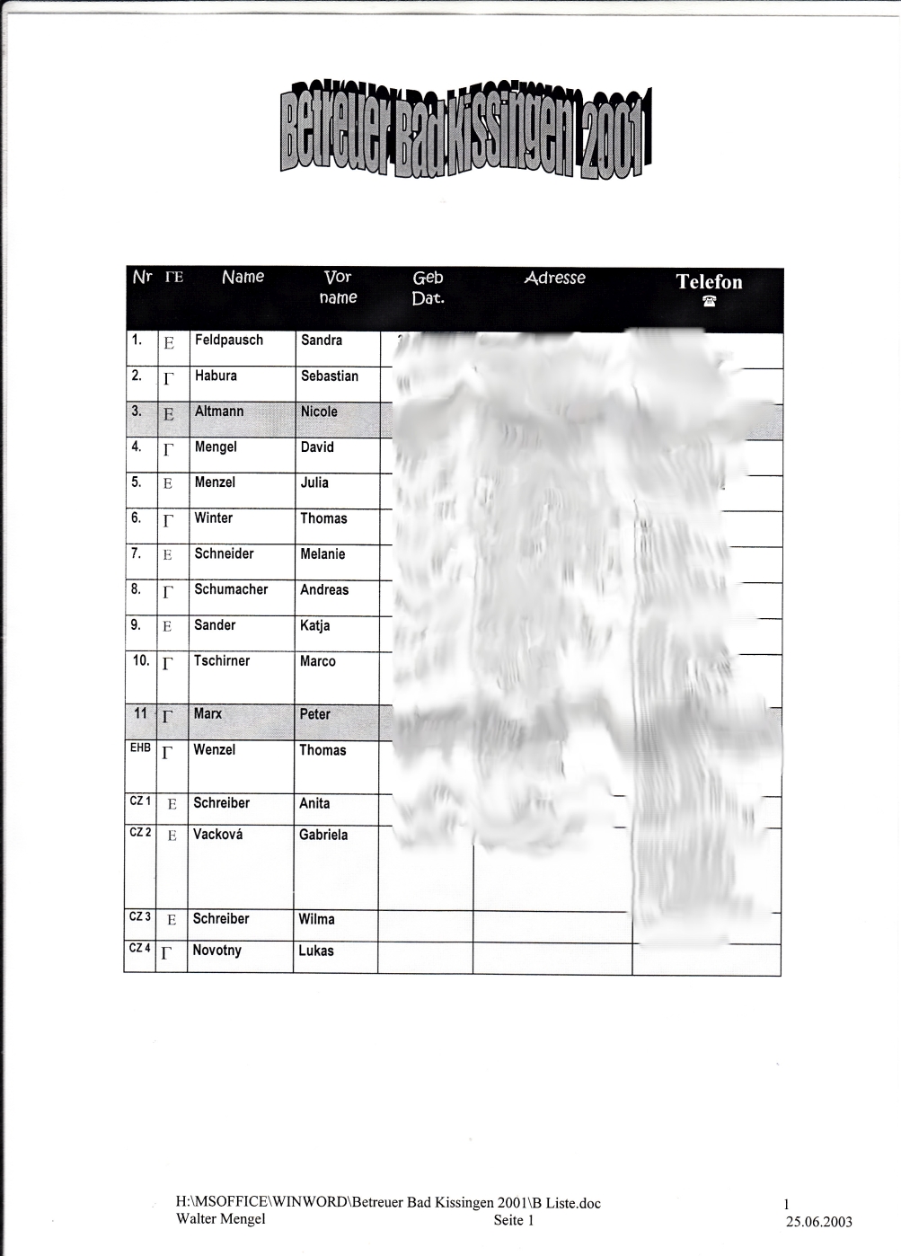JUZ Adressbuch